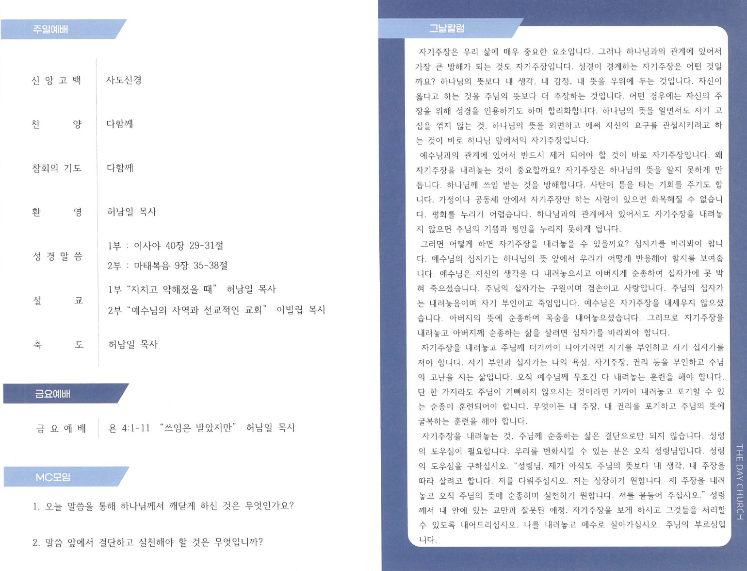 11¿ù 23ÀÏ ±³È¸¼Ò½Ä