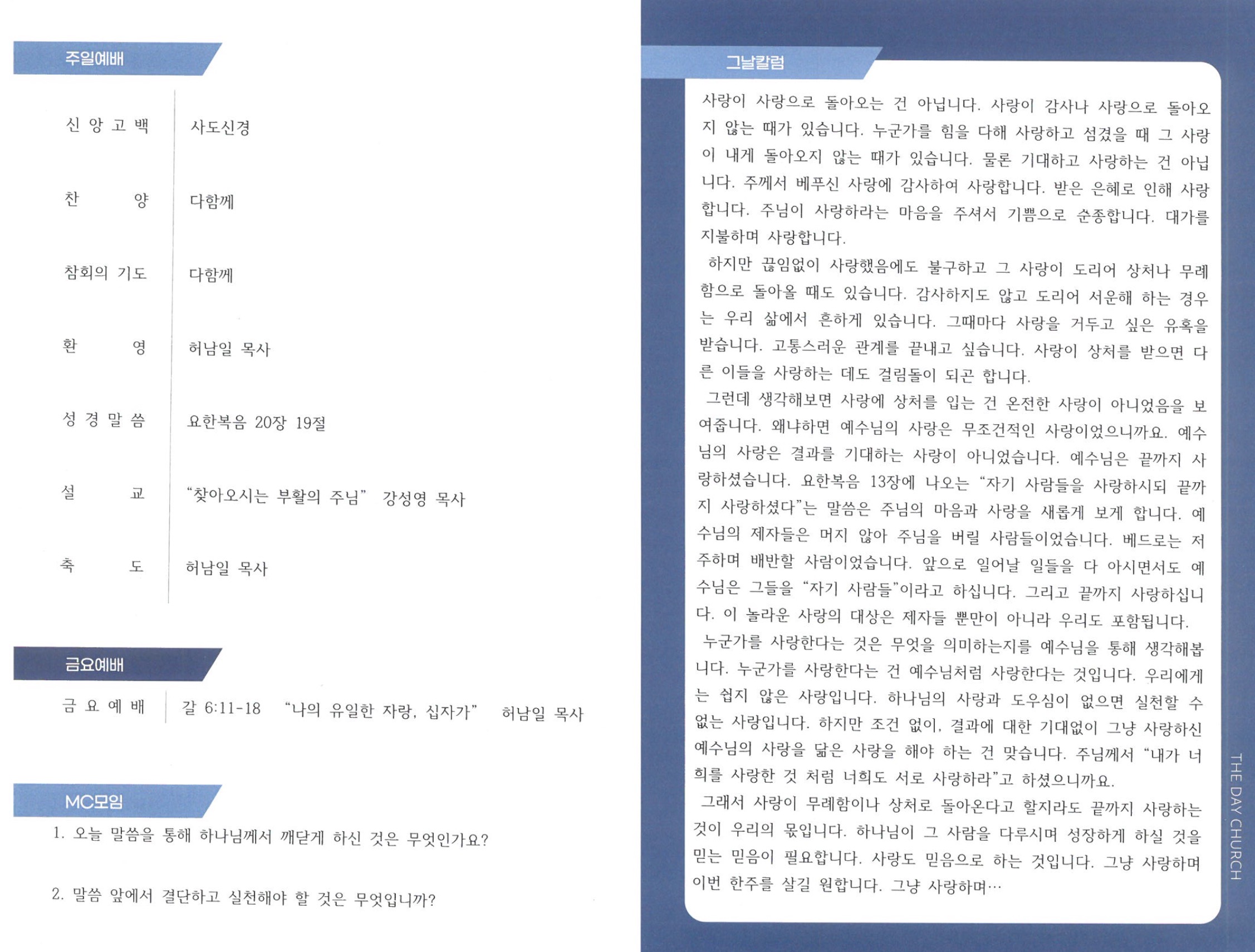 4¿ù 19ÀÏ ±³È¸¼Ò½Ä
