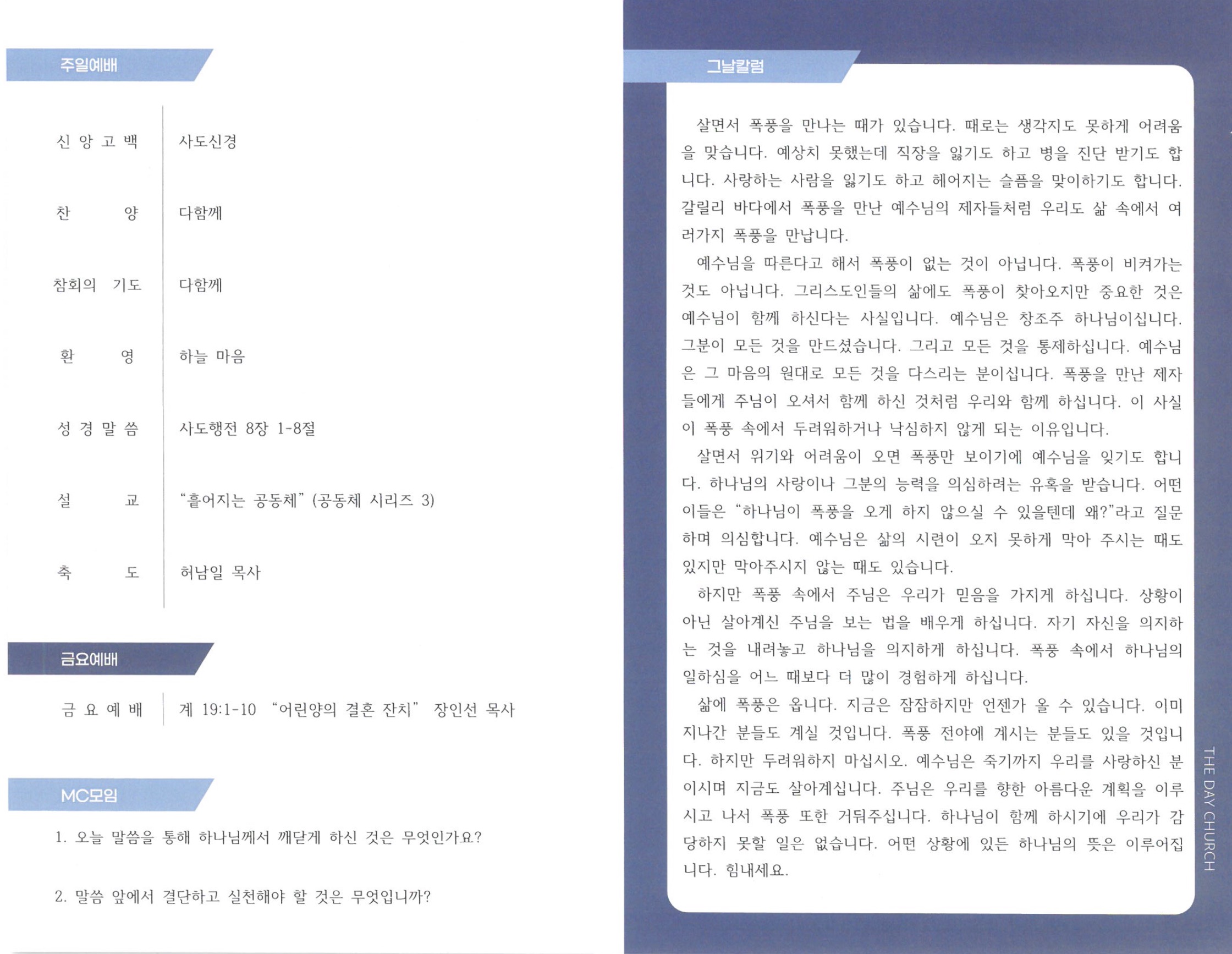 3¿ù 23ÀÏ ±³È¸¼Ò½Ä