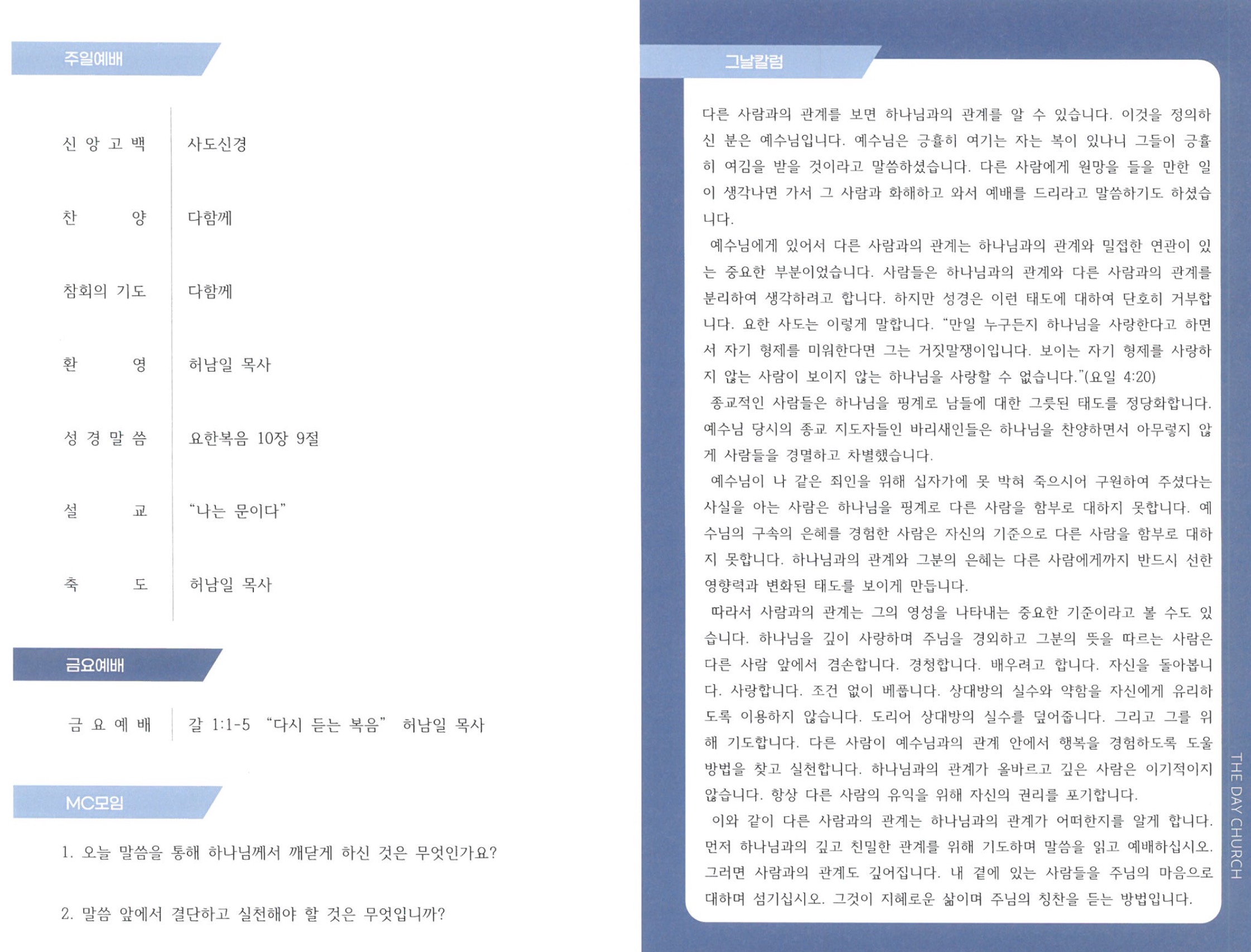 11¿ù 23ÀÏ ±³È¸¼Ò½Ä