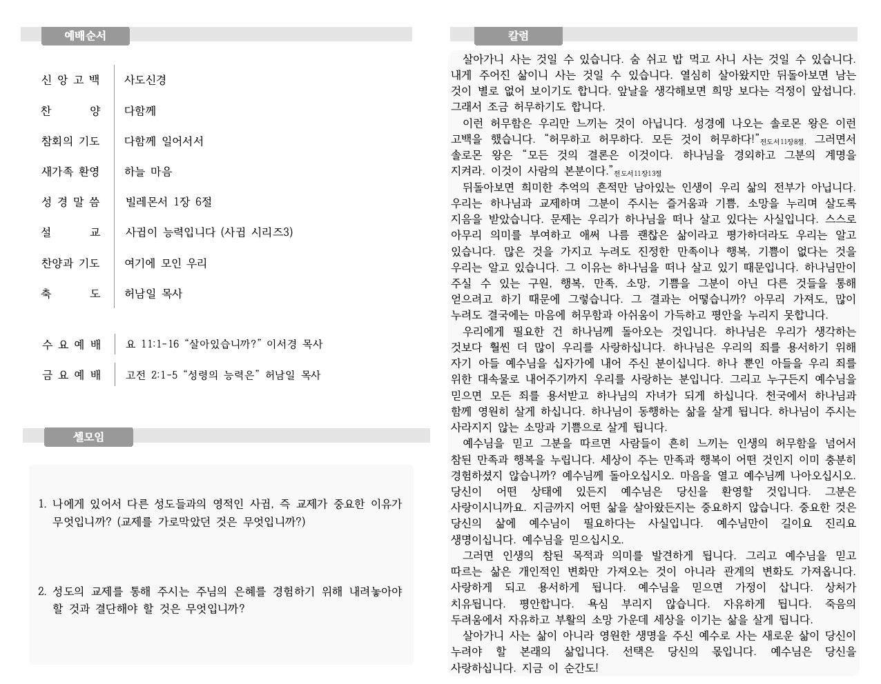 2¿ù 26ÀÏ ±³È¸¼Ò½Ä