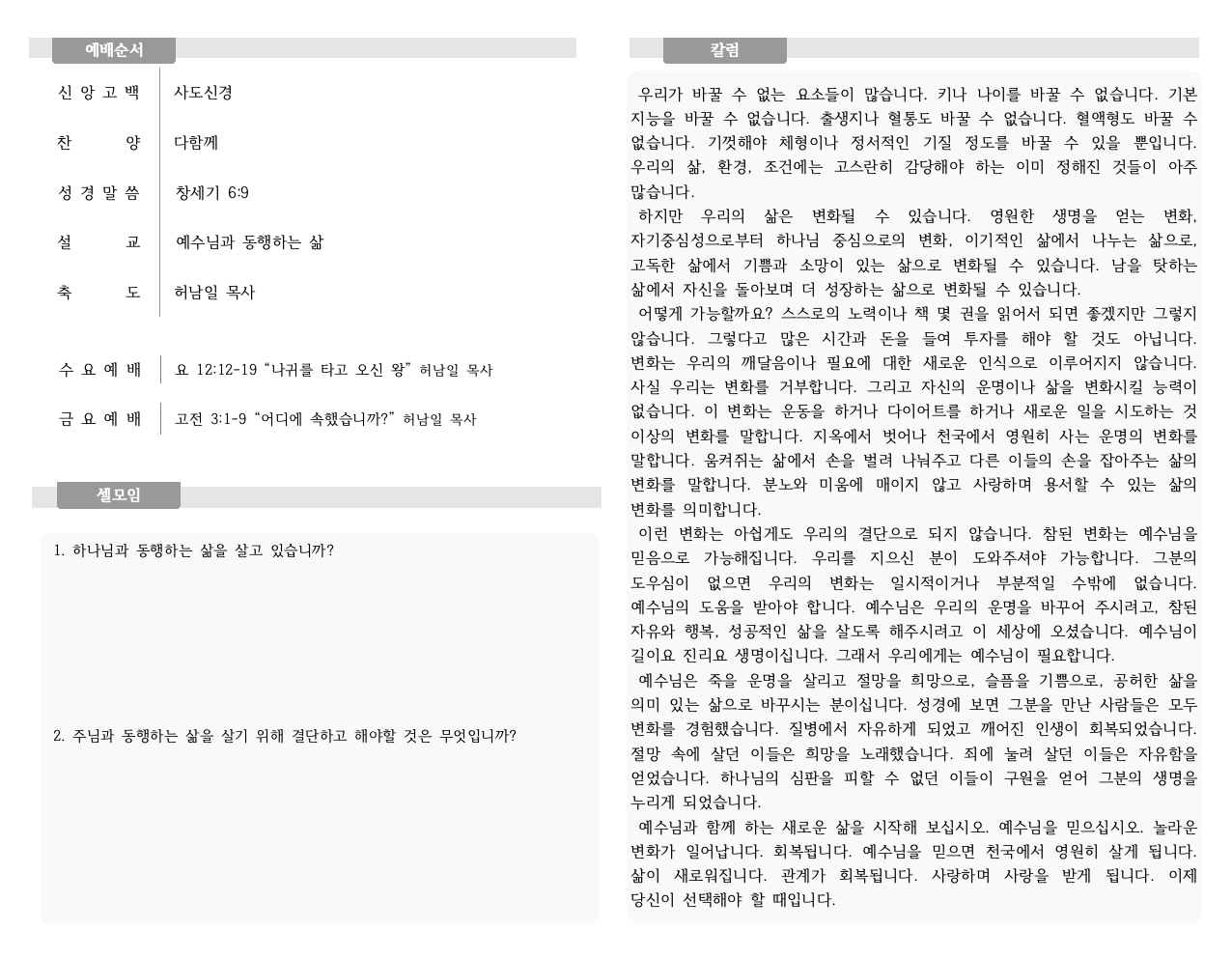 HOME > Âü¿© > ±³È¸¼Ò½Ä
