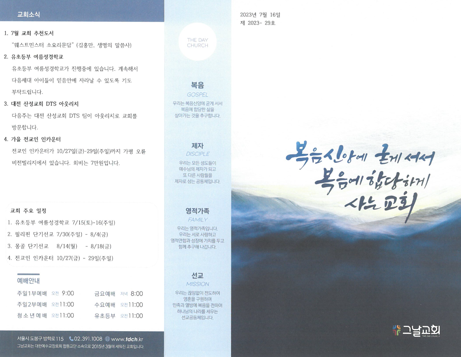 7¿ù 23ÀÏ ±³È¸¼Ò½Ä