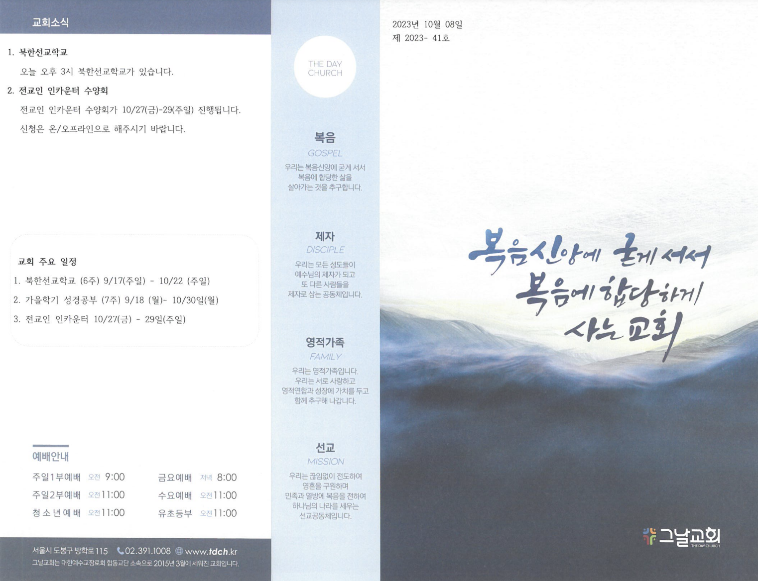 10¿ù 15ÀÏ ±³È¸¼Ò½Ä