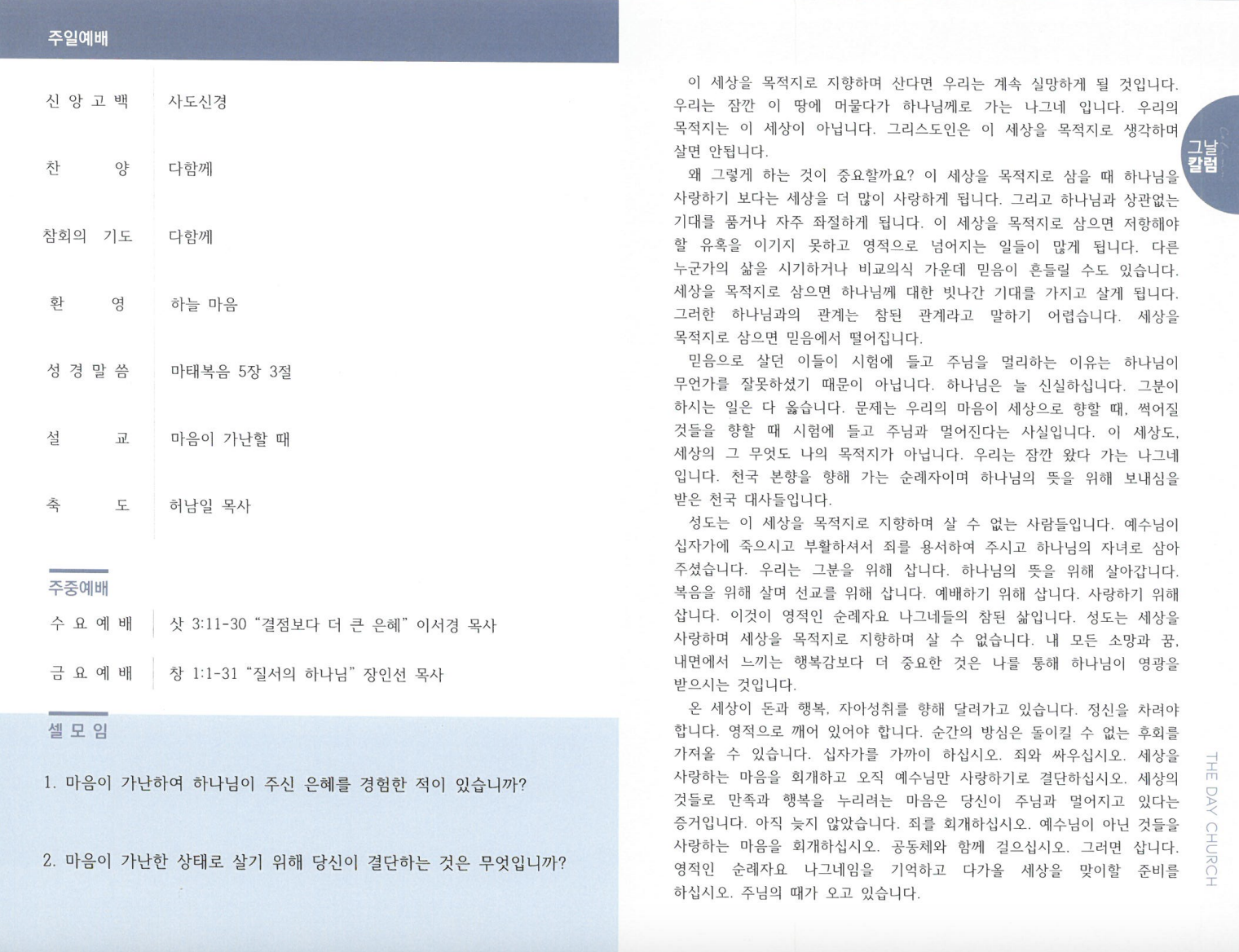 9¿ù 3ÀÏ ±³È¸¼Ò½Ä