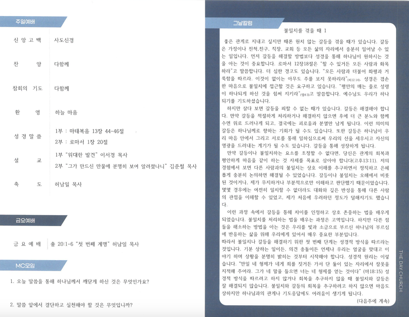 3¿ù 24ÀÏ ±³È¸¼Ò½Ä