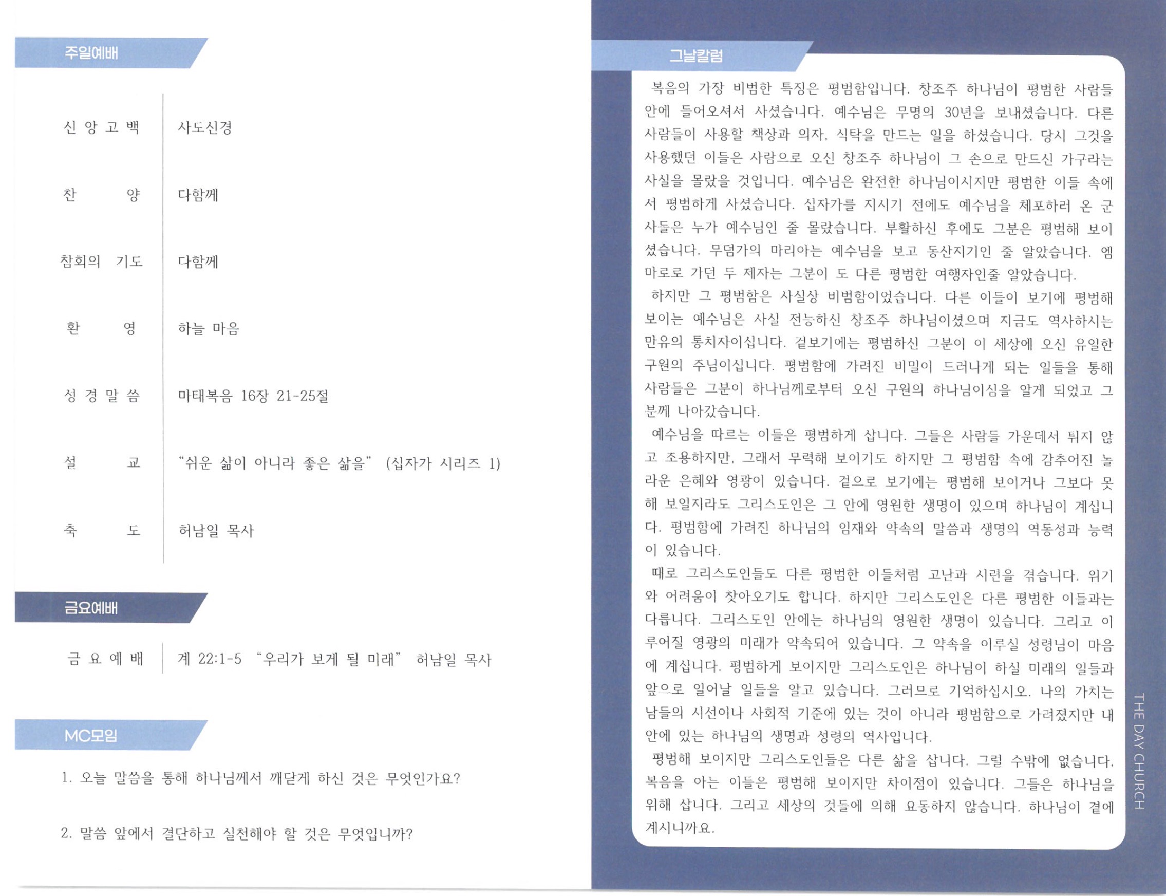11¿ù 16ÀÏ ±³È¸¼Ò½Ä